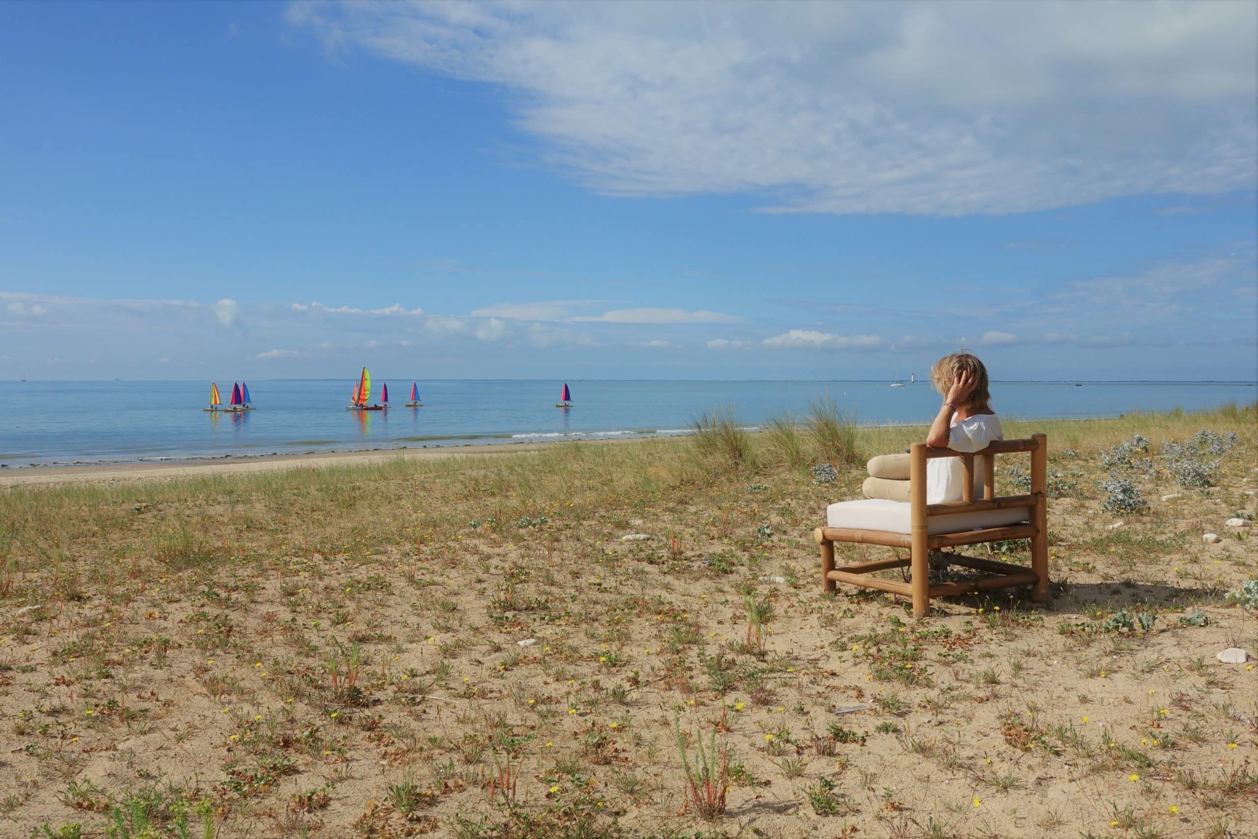 Fauteuil aux larges proportions 100% bambou naturel va dehors comme dedans solo ou accompagné du canapé BADIAN. Son coussin confort est revêtu de tissu au toucher remarquable pourtant de haute qualité nautique, nouveautés des fabricants de toiles outdoor. Coussin fabriqué en France.